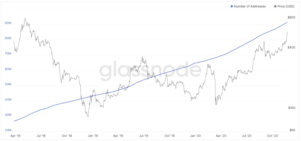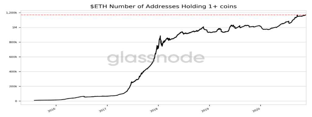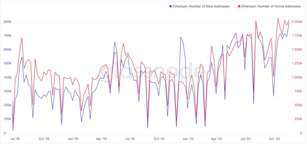 Glassnode verilerine göre, 2019 yılında düşüş yaşanan Ethereum cüzdan oluşturma sayısının 2020 yılının başından itibaren tekrar artışa geçtiği gözlemlenmektedir. Tomya uzmanları Ethereum aktif cüzdan sayısında yaşanan artışın büyük çoğunlukla ETH 2.0 güncellemesiyle ile ilgili olduğunu, aktif cüzdan ve cüzdan oluşturma sayısı artışının Ethereum fiyatlarında artışa sebebiyet olduğunu söylemektedir.