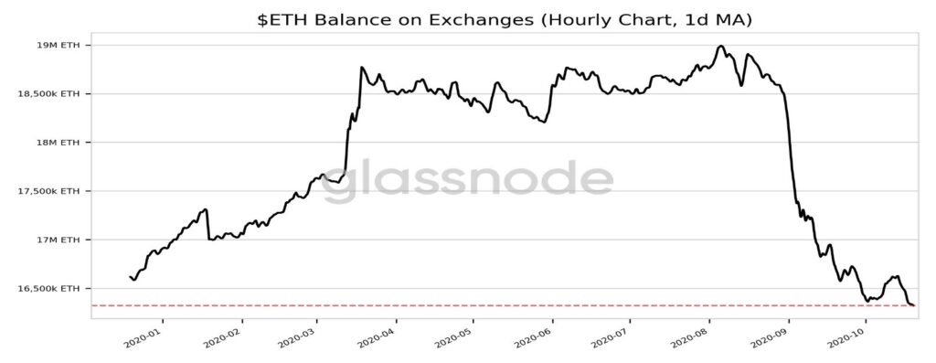Kripto para platformlarında tutulan Ethereum miktarı son 11 ayın en düşük seviyesine gelmiş durumdadır. Tomya uzmanları platformlarda dolaşan miktarın azalmasının, Ethereum fiyatında artışa sebep olabileceğini düşünmektedir.