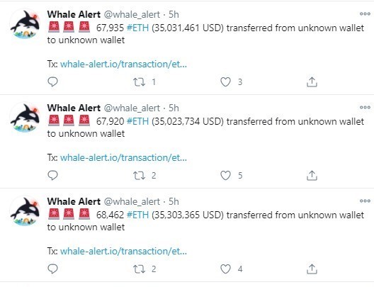 Blockchain izleme hizmetini geniş çaplı olarak sürdüren Whale Alerts raporlarına göre kripto balinaları bilinmeyen cüzdanlarına 1 milyon kadar Ethereum çekti. Kripto para platformlarında azalan arzın, Ethereum fiyatlarında artışa neden olması beklenmektedir.