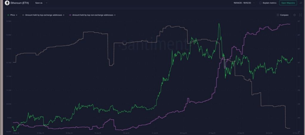 Veri izleme kaynağı Santiment’in raporuna göre en büyük 10 Ethereum balinasının borsalardaki birikimlerini soğuk cüzdanlara taşıdıkları görülmektedir. Son üç ayda kripto para borsalarındaki ETH coin’lerin yüzde 20,5 oranında azaldığı belirtilmektedir.