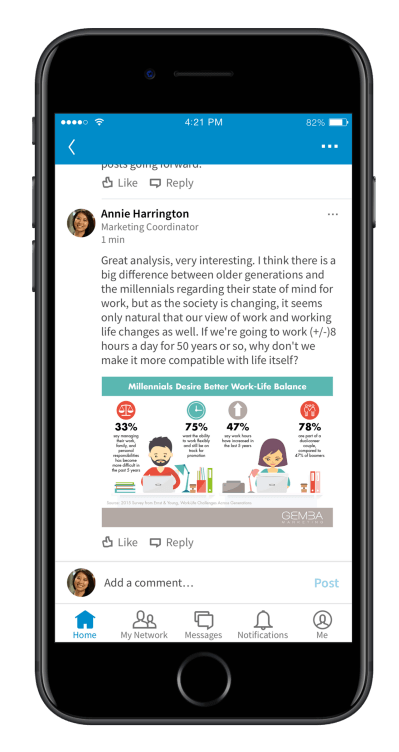 Facebook, Twitter, Instagram, Snapchat gibi sosyal ağlar tamamen görsel odaklı iken Linkedln’ de geç de olsa platformu görsellerle zenginleştiriyor. Yayınladığı son güncelleme ile Linkedln’de yorumlar artık infografiklerle ve resimlerle daha etkili hale getirilebilecek.